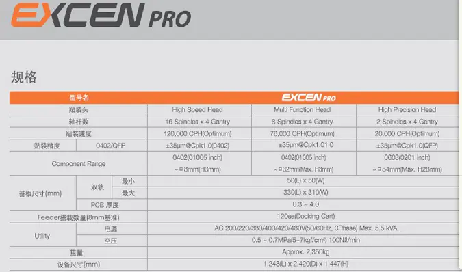 三星貼片機EXCEN PRO 配有16個吸嘴,旋轉式頭部的高速模塊式貼片機,它實現了世界同級產品中的最高速度120,000CPH,也實現了世界最高的面積生產性。另通過元器件的貼裝前·后的監控功能(SVS:Side-view Vision System)確保了微小元器件的貼裝信賴性,通過適用不停線基種變更、不同基板混流生產等多種動作模式及世界最初自動接料、自動供料功能的SMART Feeder,實現了作業便利性和實際生產性極大化