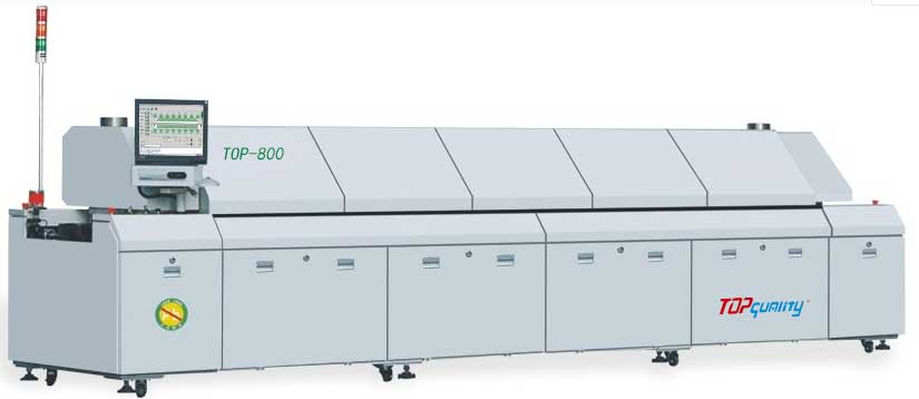 大型電腦無鉛八溫區回流焊,主要用于大規模PCB板錫膏焊接。運風馬達有變頻器控制轉速,加熱板為10MM后的鍍銅鋁板,熱補償性能好。